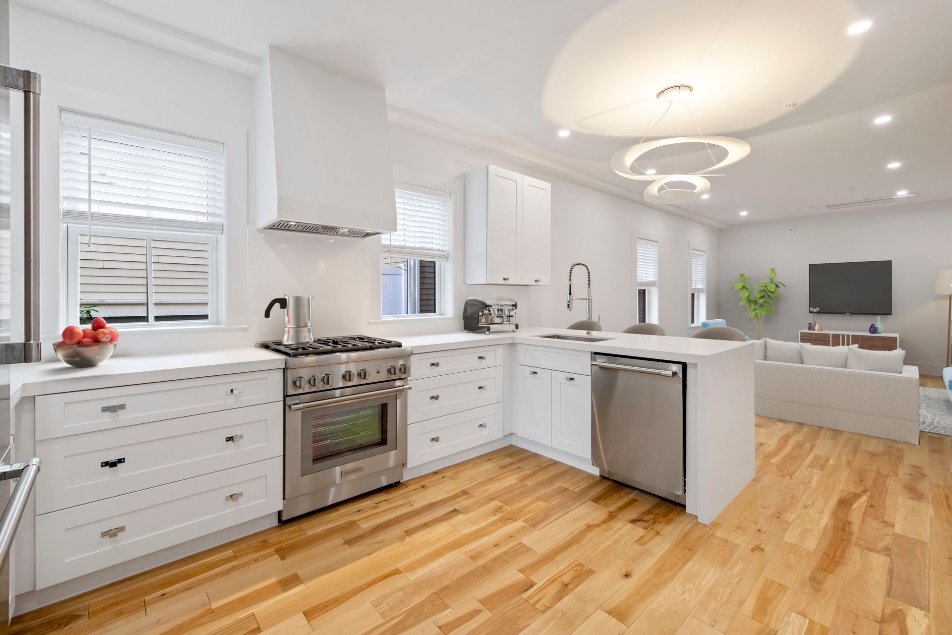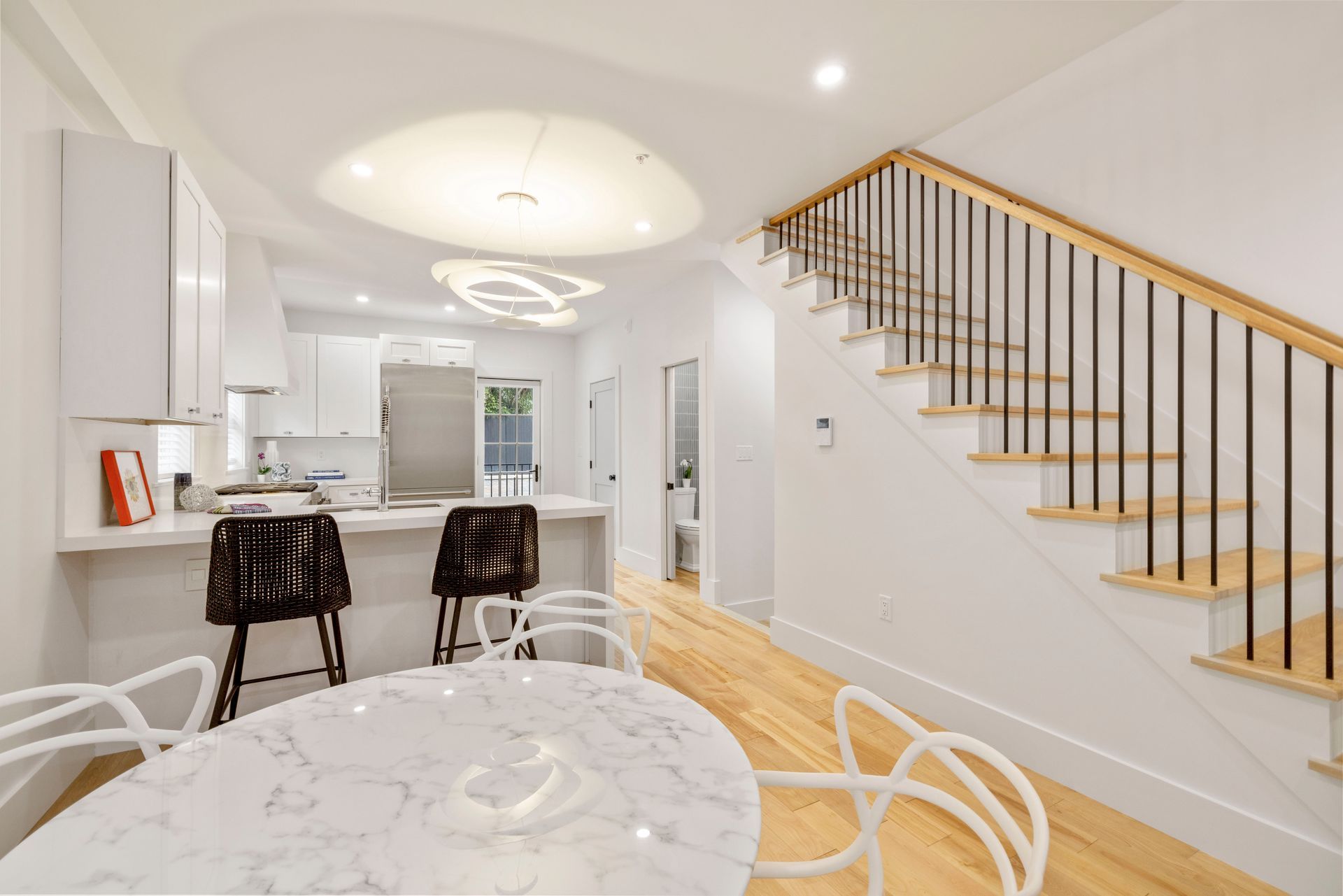 Set in a charming brick building, this elegant home spans 1,835 sq. ft. across three levels of thoughtfully designed living space. The spacious open-concept living and dining area features soaring ceilings and striking light fixtures. Overlooking this space, the stunning Chef’s kitchen boasts top-of-the-line Thermador appliances, beautiful quartz countertops, a professional-grade hood, and an island with bar seating—perfect for entertaining. The impressive primary bedroom offers a luxurious en-suite 4-piece bath and a generous walk-in closet with custom shelving. Two additional bedrooms and a full shared bath provide ample comfort and privacy. This home also includes desirable amenities like off-street parking, a powder room, in-unit laundry, and high-efficiency HVAC. Ideally located near Boston, Harvard, MIT, Kendall Square, the Life-Science Hub, and vibrant dining and shopping destinations.